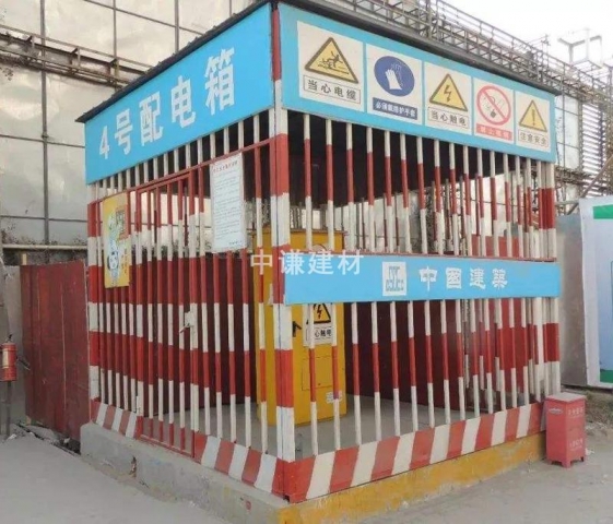 3.雙層硬防護(hù)間的防護(hù)棚外立面掛藍(lán)底白字:加強(qiáng)安全用電,防止觸電傷害等安全警示語,操作規(guī)程牌,帽頭設(shè)置建筑企業(yè)標(biāo)識(shí);
